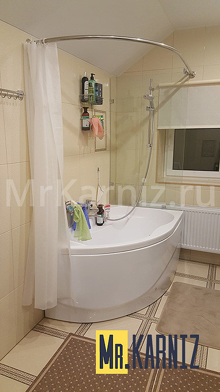 Если вы столкнулись с подобной проблемой, компания Mr. Karniz готова помочь. У нас можно купить асимметричные карнизы для ванной или заказать изделие по индивидуальным размерам.
